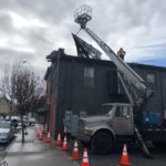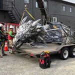 There be dragons in Renton. Well, one dragon at least. The newest public art installation sits atop a nearly 100 year old building in downtown — an imposing, giant, silver dragon peeking over the top of the structure.