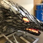 That kicked off a three-year journey to make Renton’s downtown rooftop dragon a reality — working with artists at Seattle’s Western Neon; and also working with the building’s owner (luckily, they thought it was a great idea). The result is an aluminum dragon weighing just 710 pounds, that lights up in two different colors.